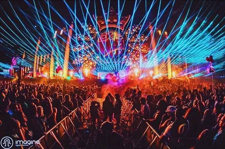 Glowing neon lights, laser shows, moon balloons, and electrifying beats under the stars.